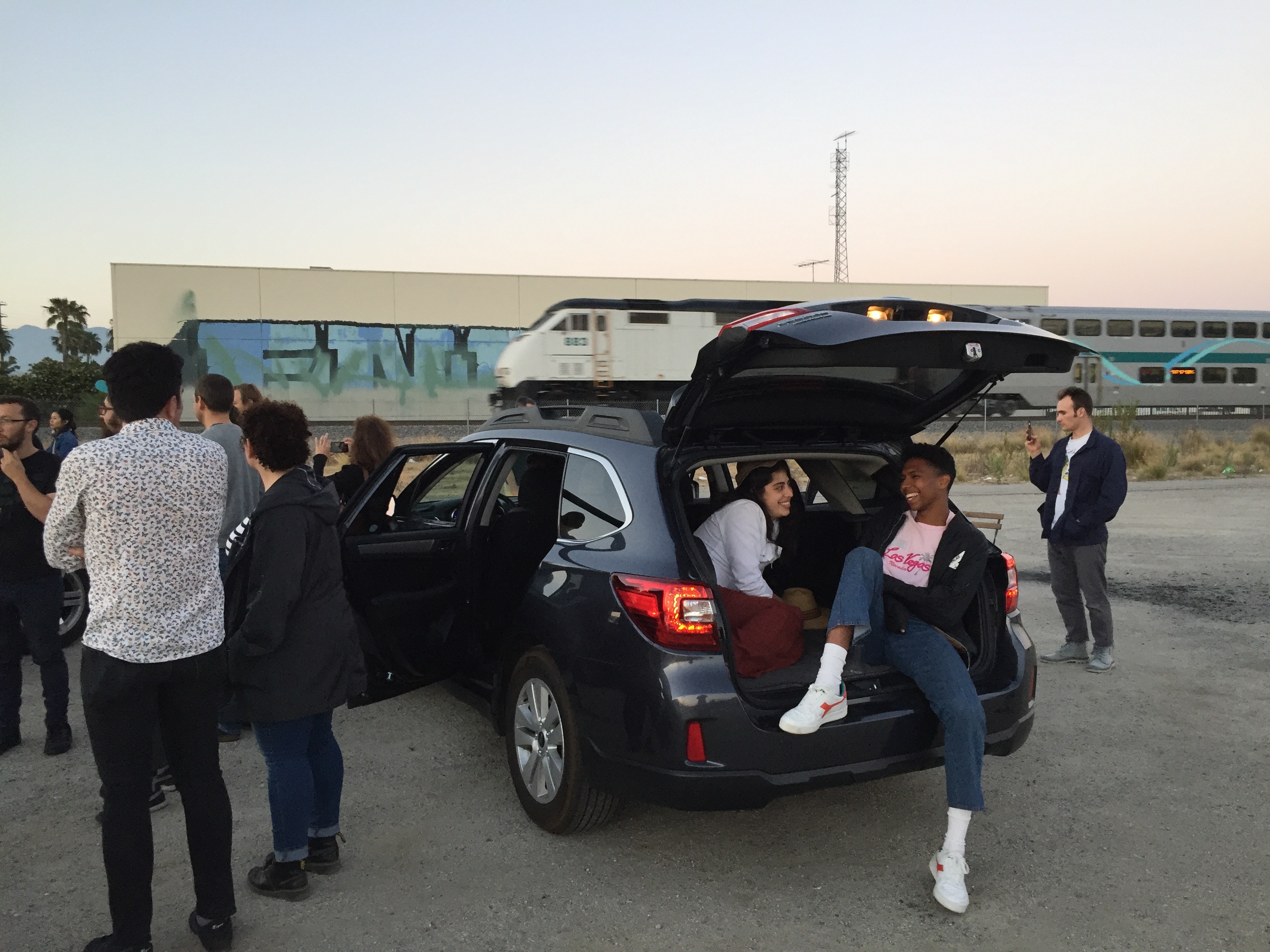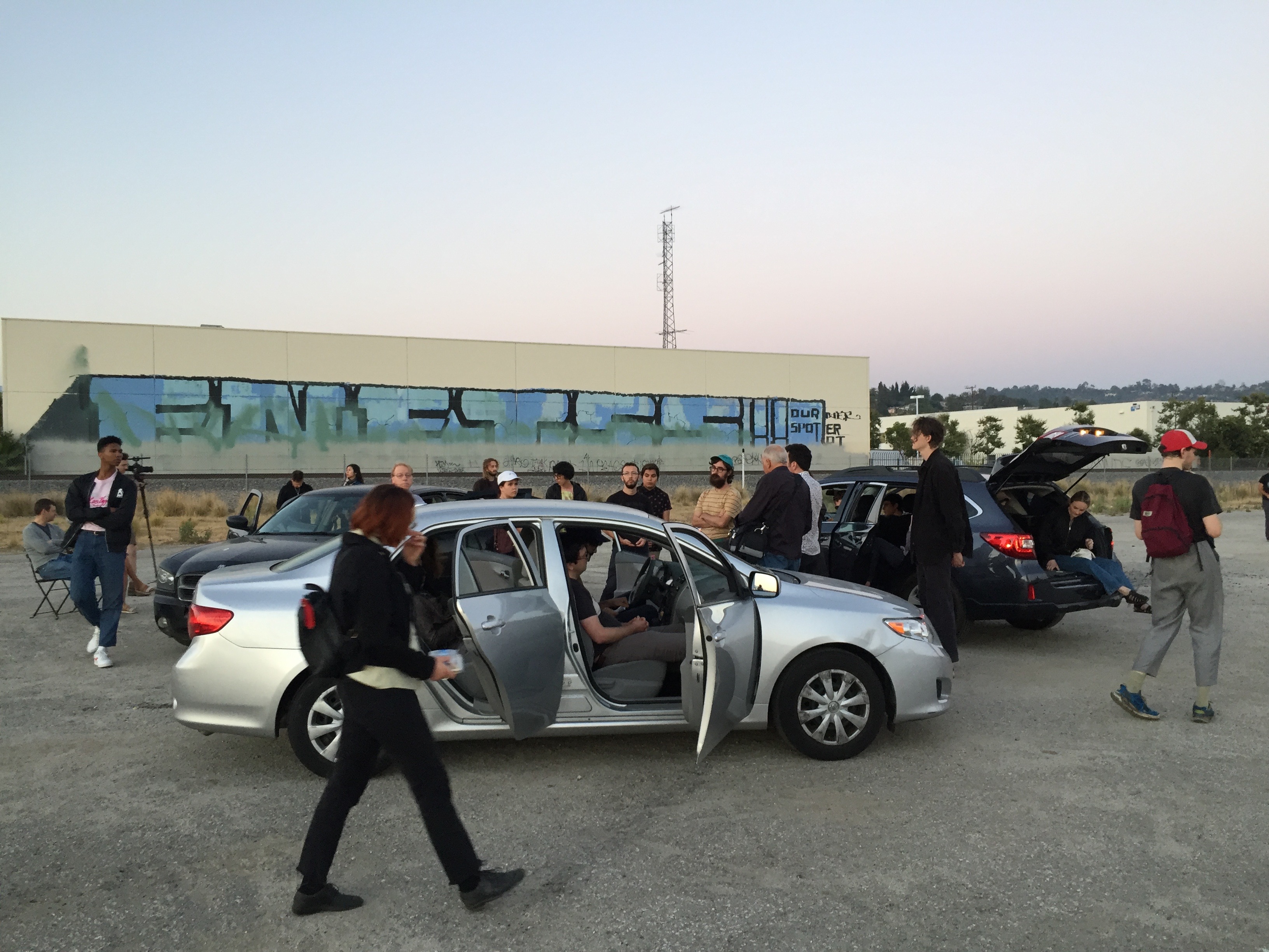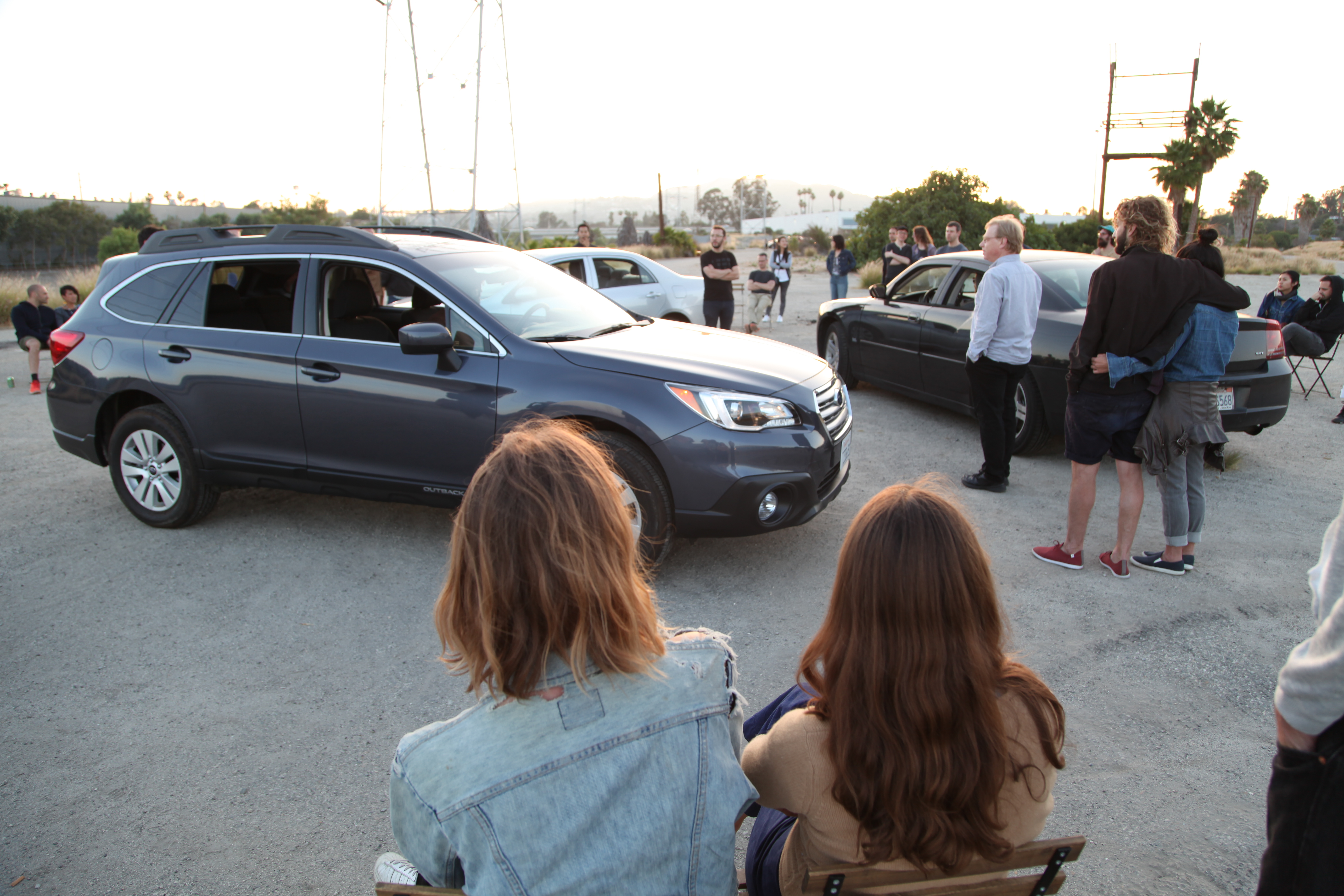 Choose whether you want to open or close doors or windows. Feel free to get out of the car and check on the overall sound/mix. Audience members are allowed and welcome to sit in the cars.